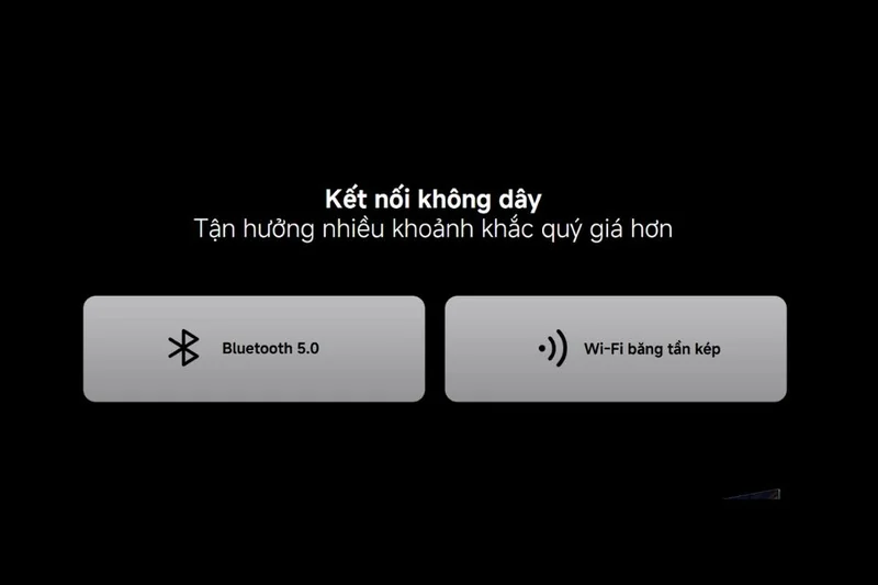 • Kết nối không dây: Hỗ trợ Bluetooth 5.0 đảm bảo kết nối ổn định với các thiết bị ngoại vi như loa soundbar, tai nghe, hoặc tay cầm chơi game. Wi-Fi băng tần kép (2.4GHz/5GHz) giúp giảm thiểu nhiễu sóng, cung cấp tốc độ mạng nhanh, ổn định hơn cho việc xem phim 4K hoặc chơi game trực tuyến mà không bị gián đoạn.