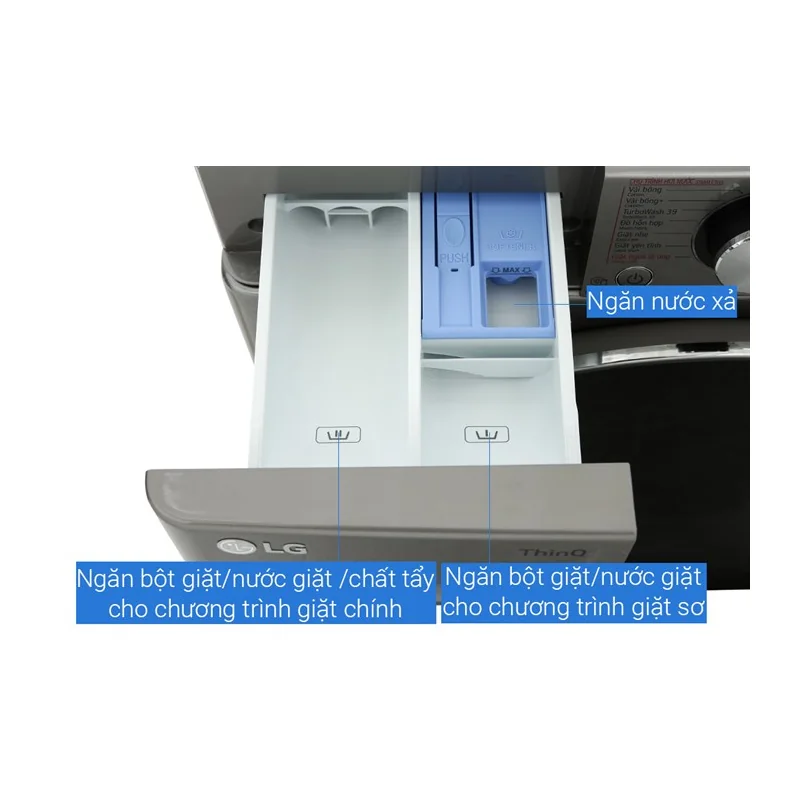 • Kết nối LG ThinQ: Điều khiển và theo dõi máy giặt từ xa qua smartphone, đồng thời chẩn đoán và xử lý nhanh các lỗi thường gặp.