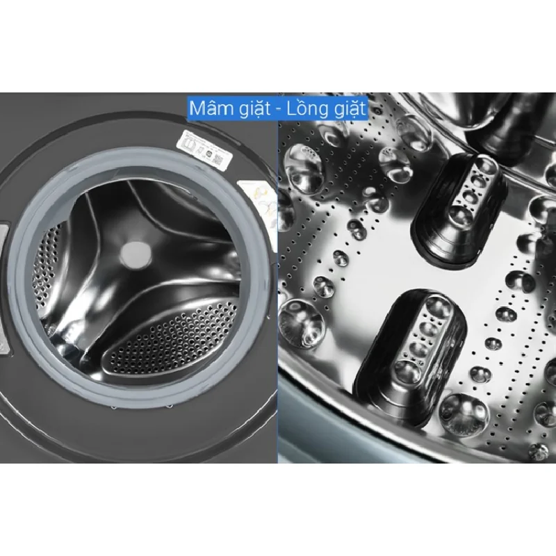 Lồng giặt bằng thép không gỉ không chỉ tăng độ bền mà còn hạn chế vi khuẩn và mảng bám hiệu quả.