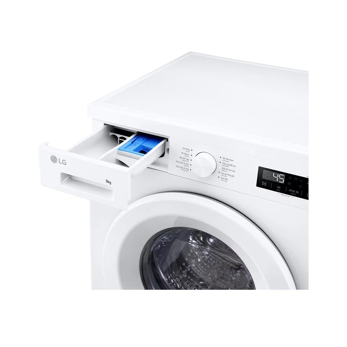 Với khối lượng giặt 9kg, máy đáp ứng tốt nhu cầu giặt hằng ngày cho gia đình 3 – 5 thành viên, kể cả những món lớn như chăn mỏng hay ga giường.