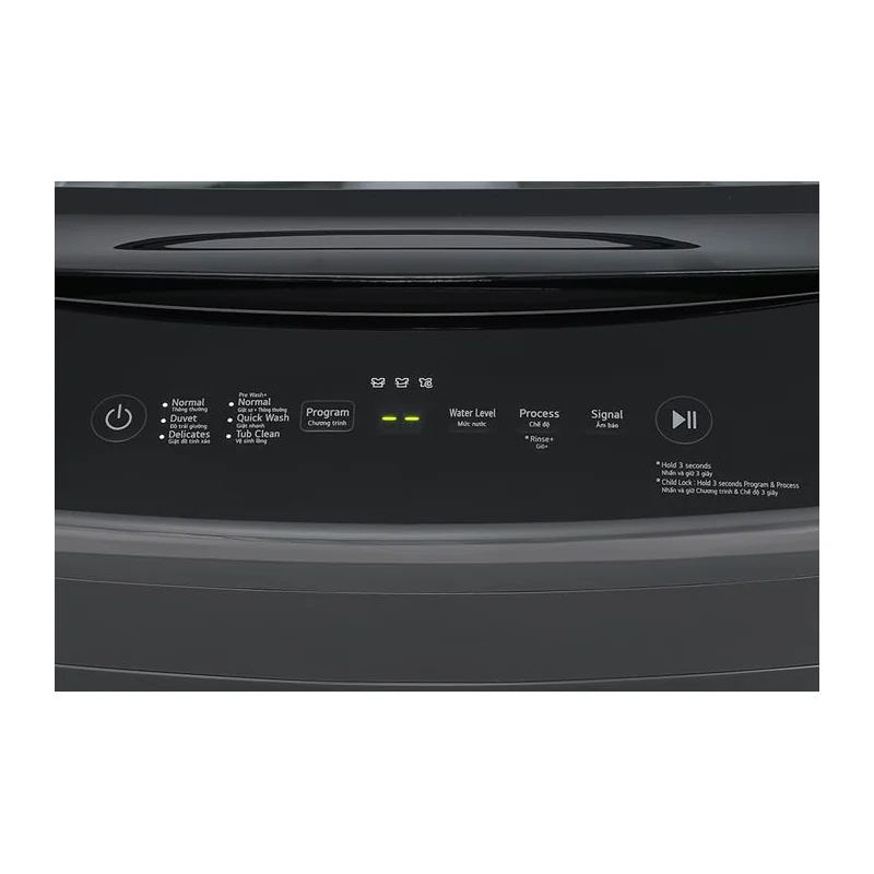 Bảng điều khiển được thiết kế với giao diện tiếng Việt trực quan, giúp người dùng dễ dàng lựa chọn chương trình giặt phù hợp. Các nút bấm lớn, có độ nảy tốt và được sắp xếp logic theo nhóm chức năng.