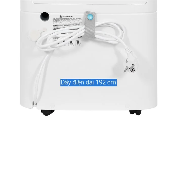 Máy hút ẩm Electrolux EDH10TRBW1 được trang bị dây nguồn dài 192 cm, giúp người dùng dễ dàng lắp đặt ở nhiều vị trí khác nhau mà không gặp trở ngại về độ dài dây.
