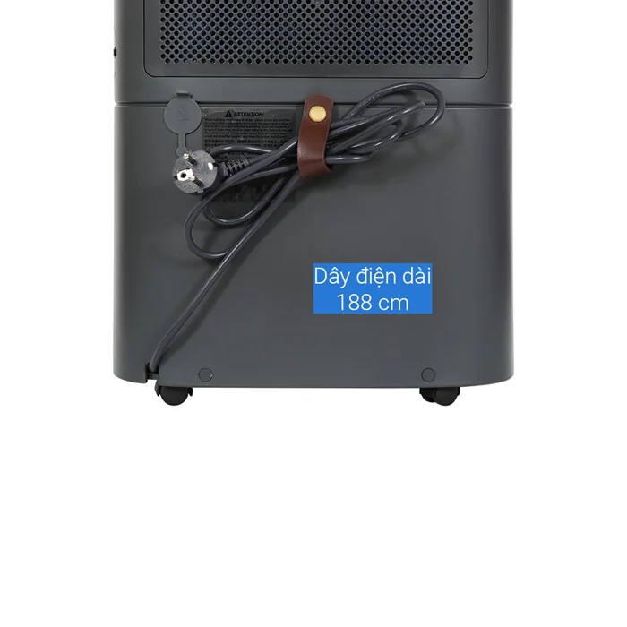 Máy có công suất hút ẩm lên đến 27 lít/ngày (ở nhiệt độ 30°C và độ ẩm 80%), phù hợp cho không gian dưới 58 m². Công suất hoạt động 305W giúp hút ẩm hiệu quả, giữ cho không gian luôn khô thoáng.