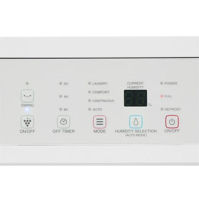 Máy được trang bị bảng điều khiển nút nhấn với màn hình hiển thị độ ẩm rõ ràng, giúp bạn dễ dàng theo dõi và điều chỉnh các chế độ hoạt động theo nhu cầu. Các chế độ bao gồm: