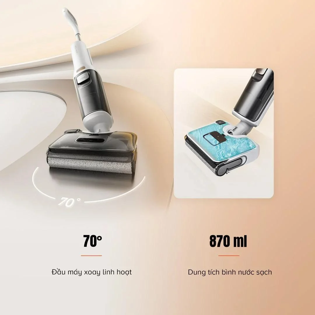 Máy còn được trang bị viên pin 2.500 mAh, cung cấp thời gian hoạt động liên tục lên đến 40 phút ở chế độ tiết kiệm. Khi pin cạn, máy có thể sạc đầy trong khoảng 3,5 giờ, giúp bạn nhanh chóng tiếp tục công việc dọn dẹp mà không bị gián đoạn. Trạm sạc đi kèm không chỉ giúp máy sẵn sàng cho lần sử dụng tiếp theo mà còn hỗ trợ sấy khô con lăn, đảm bảo vệ sinh tối ưu.
