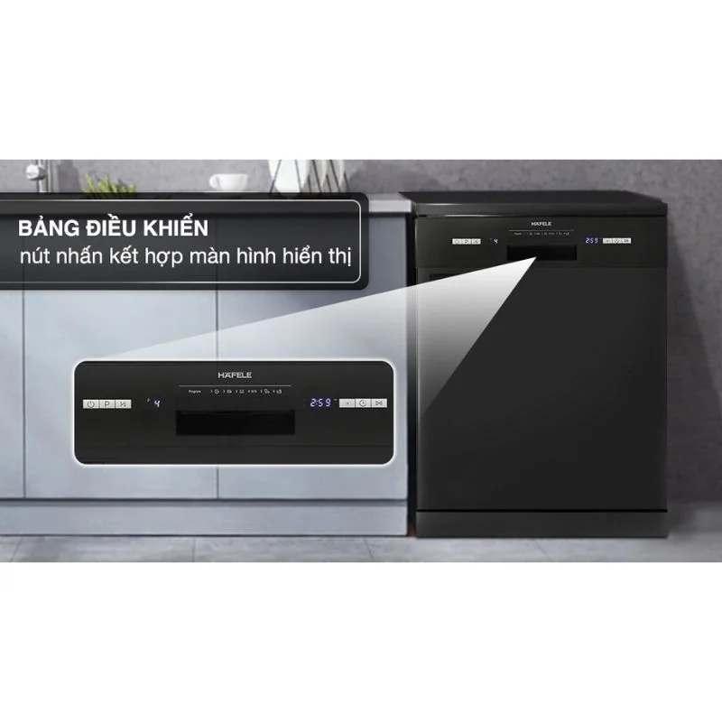 • Trang bị bảng điều khiển nút nhấn kết hợp màn hình hiển thị các thông tin sắc nét cho bạn kiểm tra, tùy chỉnh các chương trình rửa, tính năng một cách dễ dàng, chuẩn xác.Bảng điều khiển máy rửa bát độc lập Hafele HDW-F601B 535.29.670