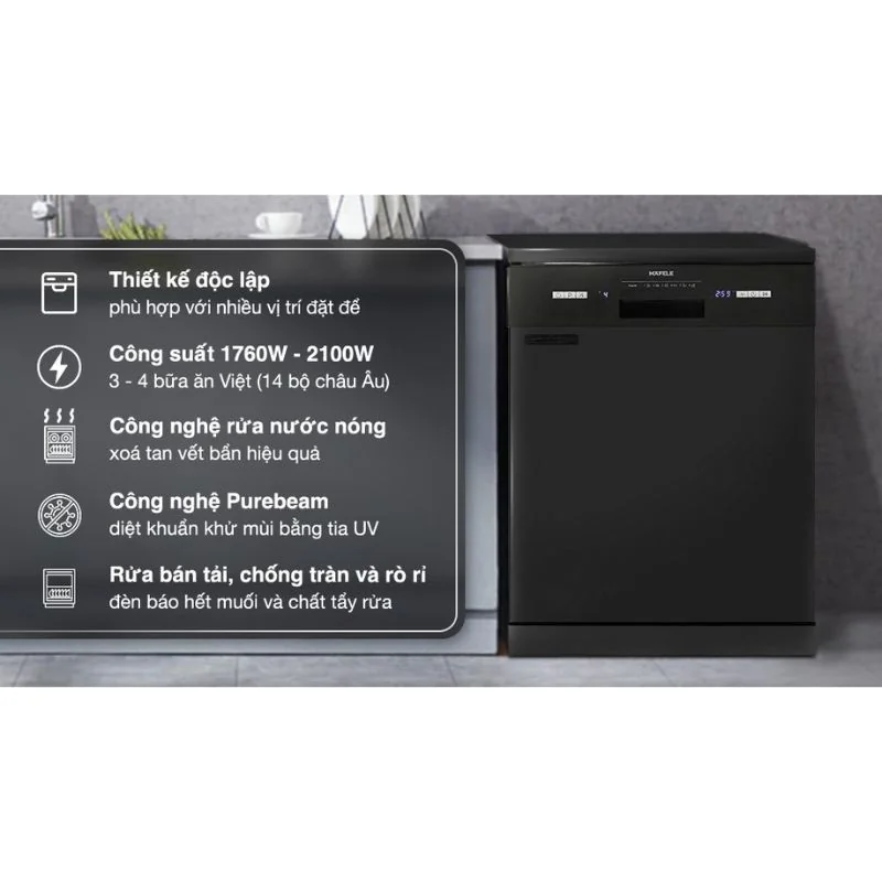 • Công nghệ Purebeam tiêu diệt vi khuẩn bằng tia UV, khử mùi hiệu quả nhờ đó góp phần giúp bảo vệ sức khỏe của gia đình, nhất là gia đình có trẻ nhỏ tốt hơn.Công nghệ máy rửa bát độc lập Hafele HDW-F601B 535.29.670