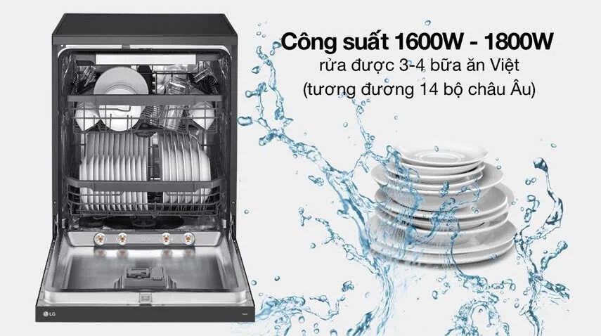 – Máy rửa bát LG LDT14SVA4 có công suất hoạt động từ 1600 đến 1800W, tương đương với 3-4 bữa ăn Việt, giúp tối ưu hóa hiệu quả rửa và tiết kiệm thời gian. Công suất mạnh mẽ này cung cấp đủ năng lượng để thực hiện các chu trình rửa mạnh, giúp loại bỏ bụi bẩn và dầu mỡ trên bát đĩa nhanh chóng và hiệu quả. Đồng thời, máy vận hành êm ái, ổn định, giúp tiết kiệm điện năng mà vẫn đảm bảo chất lượng rửa vượt trội.