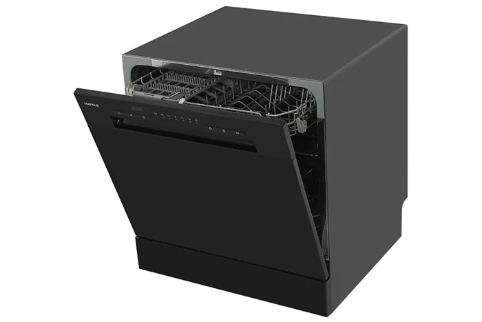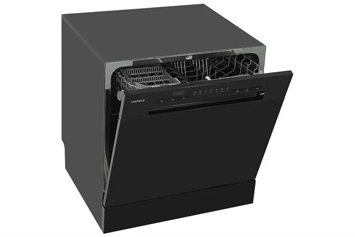 – Máy rửa chén mini Hafele HDW-T5531B (538.21.350) với tone màu đen tuyền sang trọng, được thiết kế theo dạng máy rửa chén để bàn giúp bạn có thể đặt để máy một cách dễ dàng, không bị khó khăn trong việc đặt máy vào hộc tủ bếp.