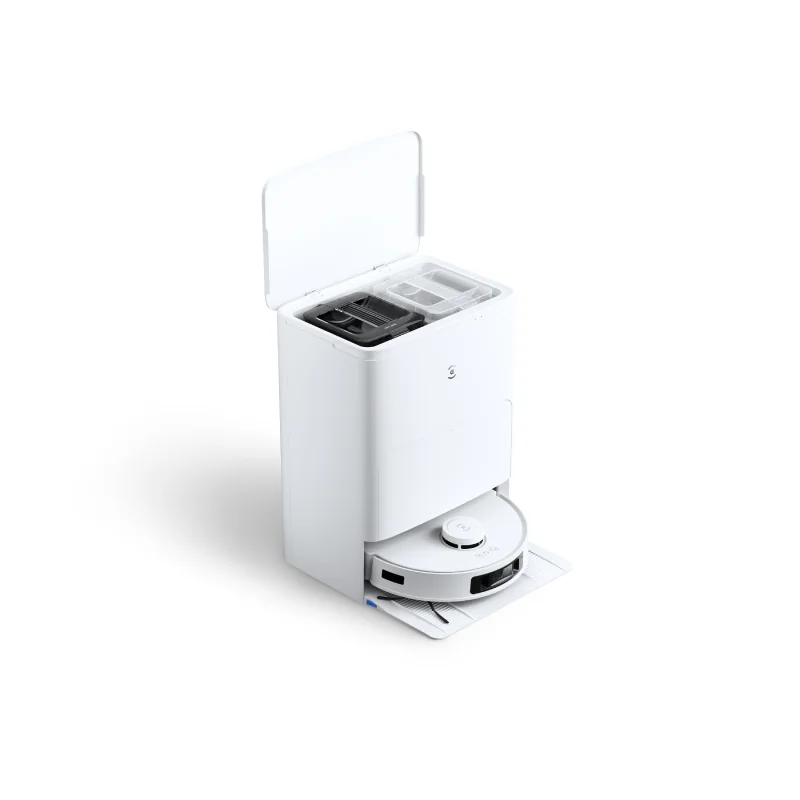 Trạm sạc đa năng của Ecovacs T30S KR là yếu tố then chốt tạo nên sự đột phá của sản phẩm. Với thiết kế hình vuông hiện đại, trạm sạc không chỉ nạp pin cho robot mà còn tự động thu gom bụi, giặt giẻ lau và sấy khô.