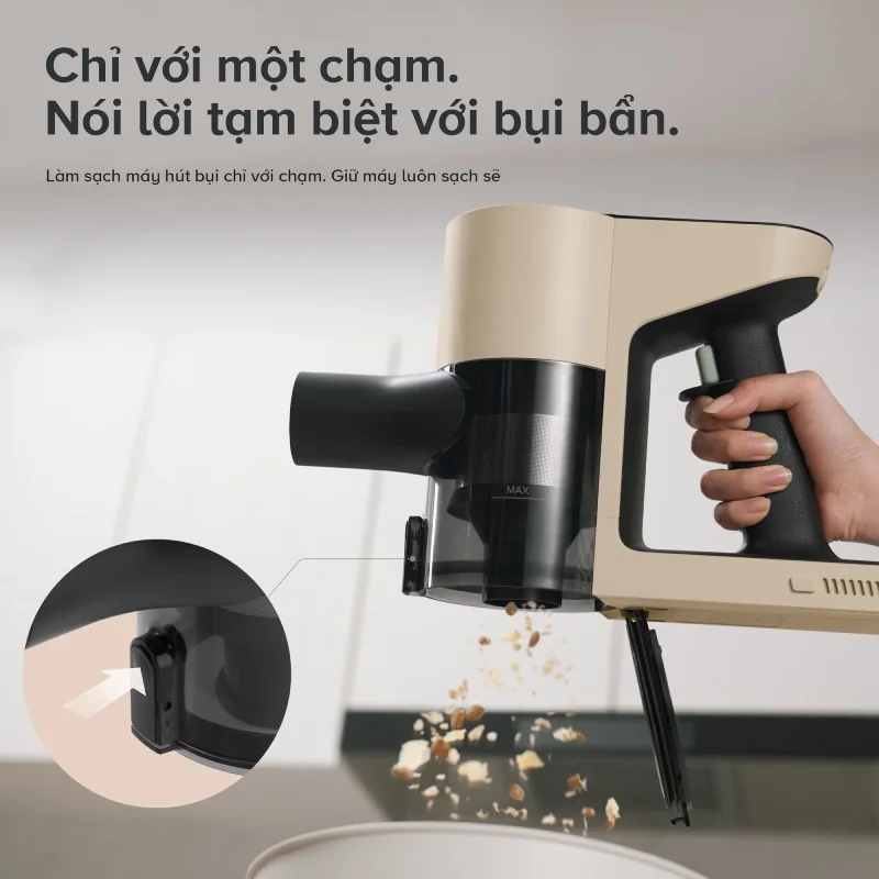 Hệ thống hút bụi được tối ưu với thiết kế thông minh, cho phép người dùng làm sạch hiệu quả ở cả những khu vực tối như gầm tủ, gầm giường nhờ trang bị đèn LED chiếu sáng ngay trên đầu hút chính. Bình chứa bụi dung tích lớn giúp người dùng sử dụng liên tục mà không cần đổ bụi thường xuyên, mang lại trải nghiệm dọn dẹp liền mạch và tiện lợi.