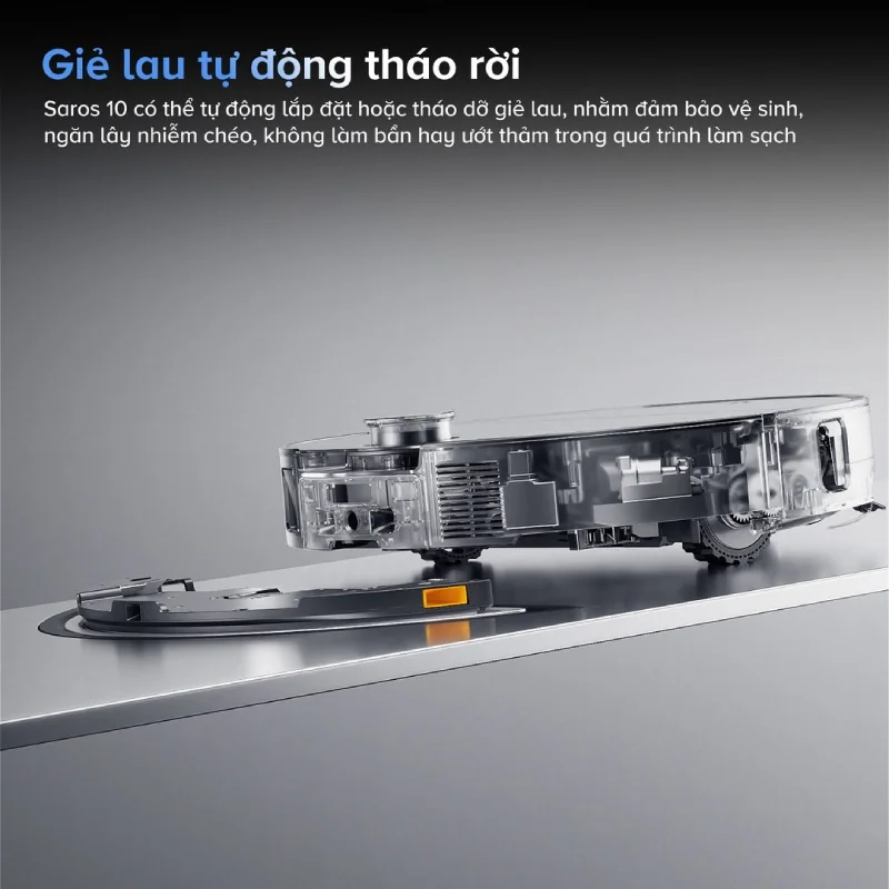 Đặc biệt, đế sạc thông minh của Saros 10 được thiết kế tiện lợi, tích hợp hệ thống tự làm sạch toàn diện và ngăn chứa bụi lớn đến 3 lít, giúp người dùng không cần phải đổ bụi trong nhiều tuần.