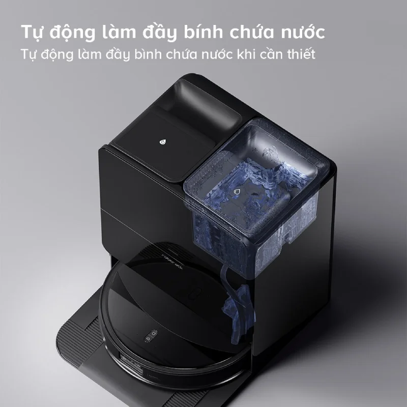Đi kèm với robot là đế sạc thông minh tích hợp hệ thống hút bụi tự động, với thiết kế hiện đại, chiếm diện tích hợp lý, phù hợp với nhiều không gian sống khác nhau.