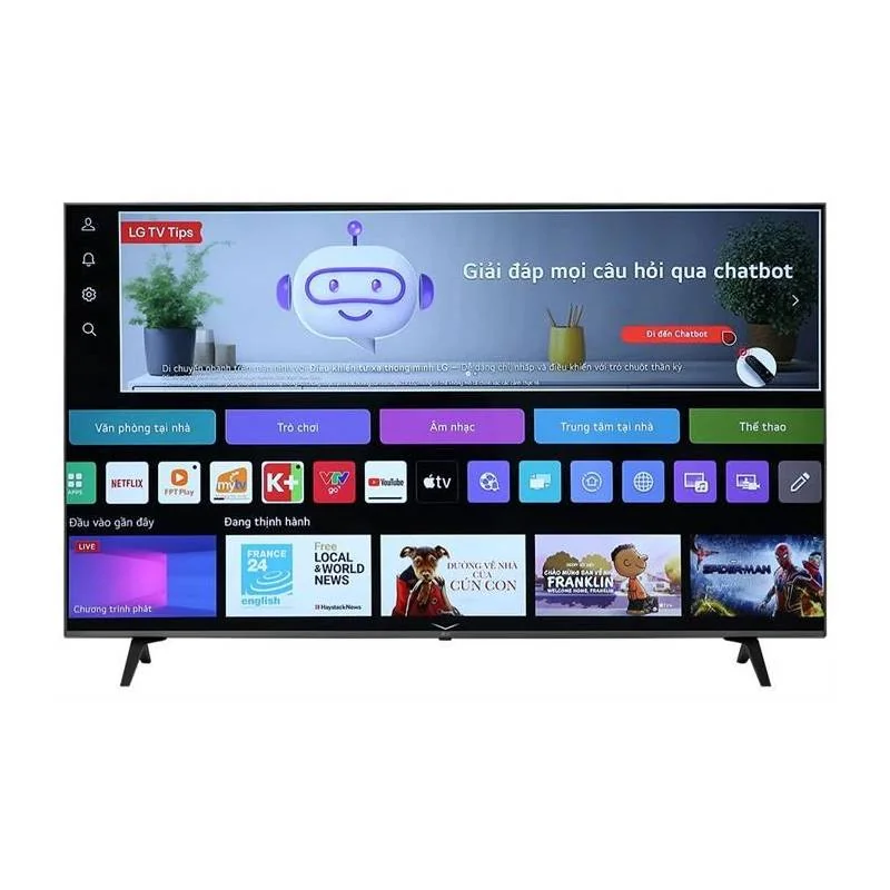 Smart Tivi LG 65 Inch 4K 65UT8050PSB mang đến trải nghiệm giải trí đỉnh cao với màn hình 65 inch sắc nét, bộ xử lý α5 AI Processor 4K Gen7 mạnh mẽ và công nghệ âm thanh AI Sound Pro sống động. Sản phẩm này không chỉ sở hữu thiết kế tinh tế với viền siêu mỏng, mà còn tích hợp hệ điều hành webOS 24 thân thiện, đáp ứng đa dạng nhu cầu giải trí của gia đình bạn.