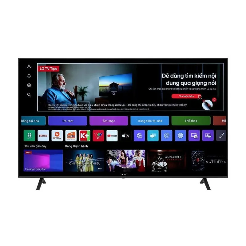 Tivi đã được cài đặt sẵn các ứng dụng giải trí phổ biến như Netflix và YouTube. Ngoài ra, người dùng có thể bổ sung thêm nhiều ứng dụng khác như FPT Play, Galaxy Play, VieON, TikTok, TV 360, VTV Go.