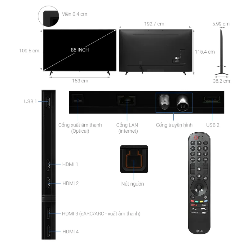 Smart Tivi LG NanoCell 86 inch 4K - 86NANO81TSA Viền mỏng