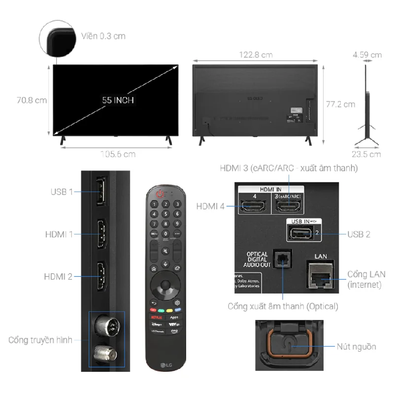 4 cổng HDMI có 1 cổng HDMI eARC (ARC)