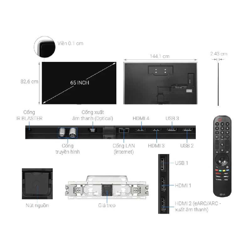 4 cổng HDMI có 1 cổng HDMI eARC (ARC)