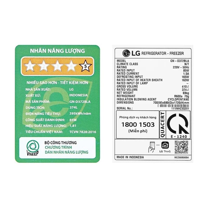 Kết quả là tủ lạnh tiêu thụ điện hiệu quả hơn, tiết kiệm lên đến 32% so với các dòng máy không sử dụng công nghệ Inverter. Theo số từ nhà sản xuất, trình tiêu thụ điện trung bình của tủ lạnh LG GN-D372BLA chỉ khoảng 0,86 kWh/ngày, giúp giảm đáng kể chi phí điện năng hàng tháng cho gia đình.