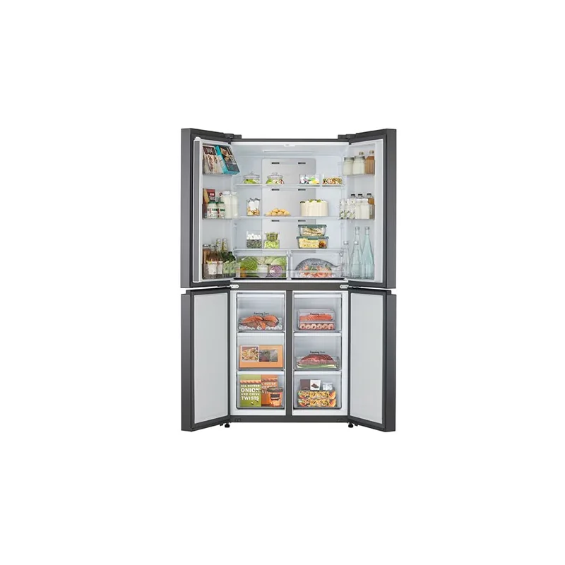 Tủ lạnh LG GR-B50BL sở hữu thiết kế tủ lạnh 4 cánh (Multi Door) hiện đại với dung tích lên đến 470 lít, đáp ứng nhu cầu sử dụng của gia đình từ 4-5 thành viên. Sản phẩm mang tông màu đen sang trọng (Black Steel) kết hợp với bề mặt phẳng tinh tế, tạo nên điểm nhấn nổi bật cho không gian bếp hiện đại.