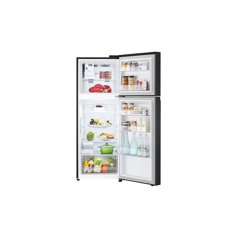 Một trong những điểm nổi bật của tủ lạnh LG Inverter 315 Lít LTB31BLMA là công nghệ Door Cooling+. Hệ thống này tạo ra luồng khí lạnh từ phía trên cửa tủ, giúp làm lạnh nhanh chóng và đồng đều toàn bộ không gian bên trong, kể cả các ngăn chứa ở cửa tủ – khu vực thường khó duy trì nhiệt độ ổn định nhất.