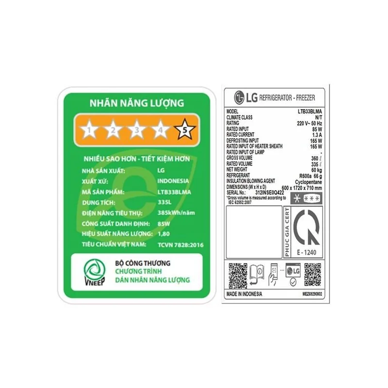 Nhờ đó, tủ lạnh LG LTB33BLMA tiết kiệm đến 36% điện năng so với các mẫu tủ lạnh thông thường, giúp giảm đáng kể chi phí điện hàng tháng và thân thiện với môi trường.