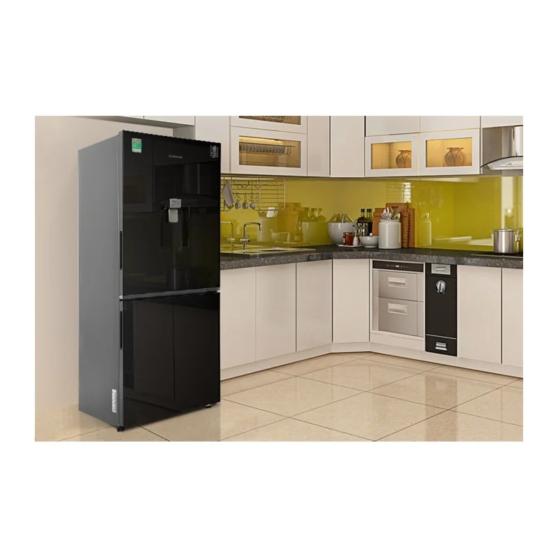 Bề mặt tủ được thiết kế chống vân tay, dễ dàng lau chùi và giữ cho tủ lạnh luôn sạch sẽ, bóng đẹp. Các ngăn kệ bên trong được làm từ kính chịu lực, có khả năng chịu được trọng lượng lớn mà không bị biến dạng theo thời gian. Tay nắm âm tinh tế không chỉ tạo nên vẻ đẹp sang trọng mà còn giúp tiết kiệm không gian, đặc biệt phù hợp với những căn bếp có diện tích khiêm tốn.
