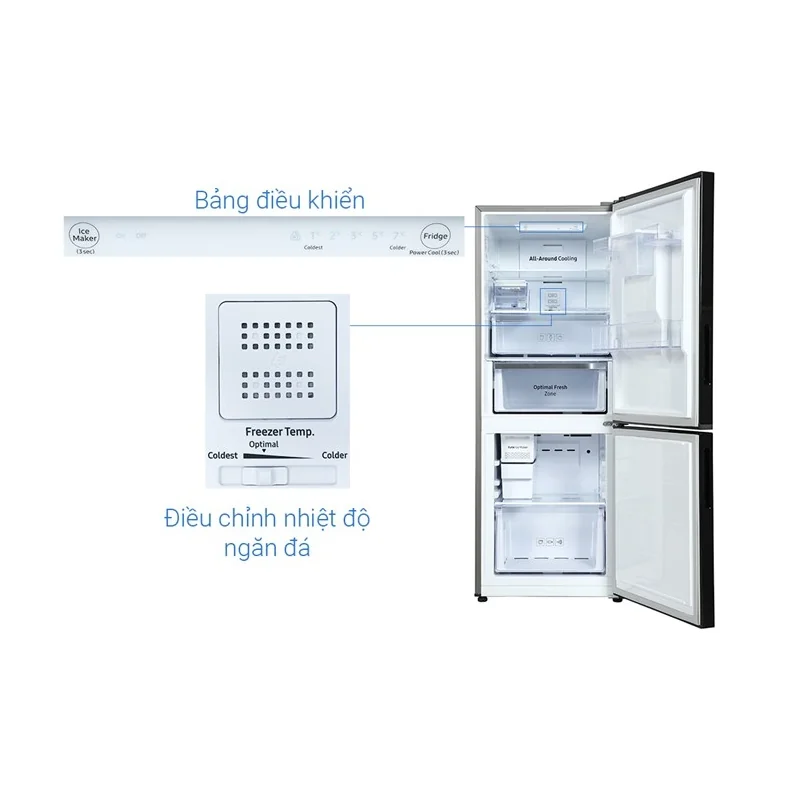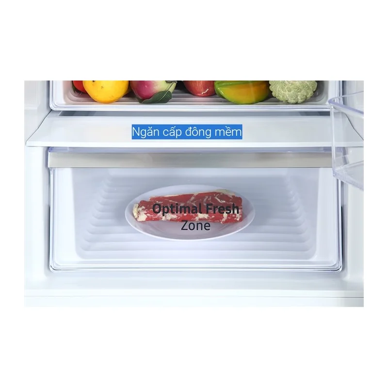 Một trong những tính năng đặc biệt của tủ lạnh Samsung RB27N4190BU/SV là ngăn đông mềm Optimal Fresh Zone. Đây là khu vực được duy trì ở nhiệt độ thấp hơn ngăn mát nhưng cao hơn ngăn đông (khoảng -1°C đến 1°C), tạo điều kiện lý tưởng để bảo quản thịt, cá và các thực phẩm tươi sống mà không cần đông đá.
