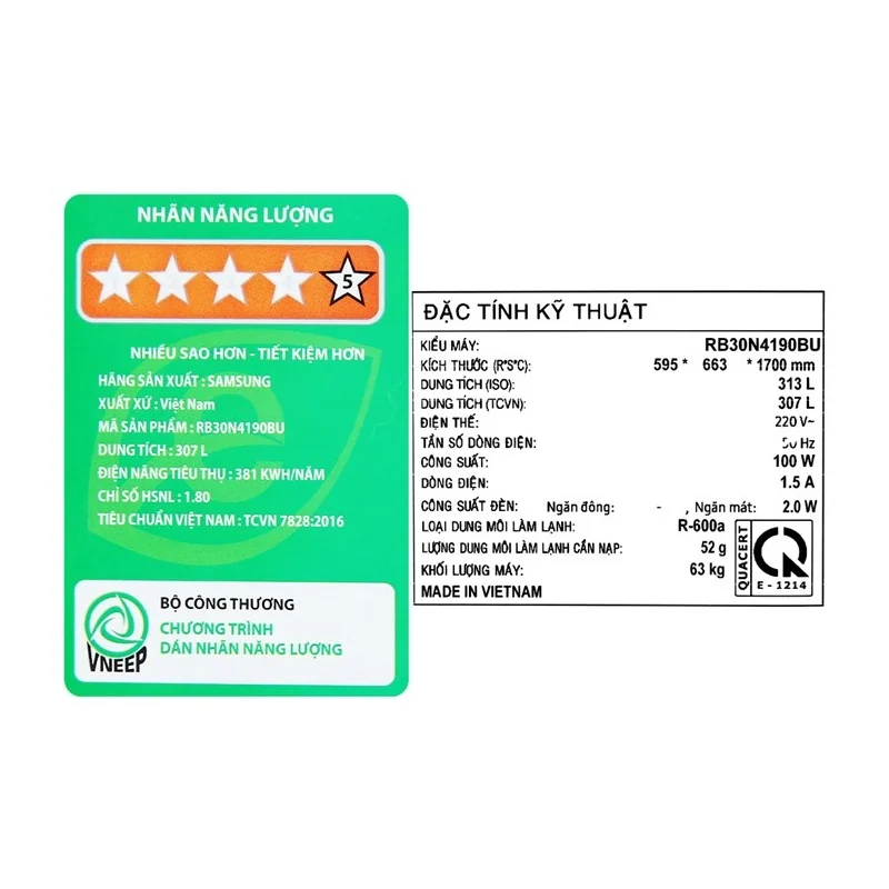Với tổng dung tích 307 lít, tủ lạnh Samsung RB30N4190BU/SV phù hợp cho gia đình từ 3-5 thành viên. Sự phân bố không gian bên trong được thiết kế thông minh với ngăn mát 215 lít và ngăn đá 92 lít, đáp ứng đầy đủ nhu cầu bảo quản thực phẩm hàng ngày.
