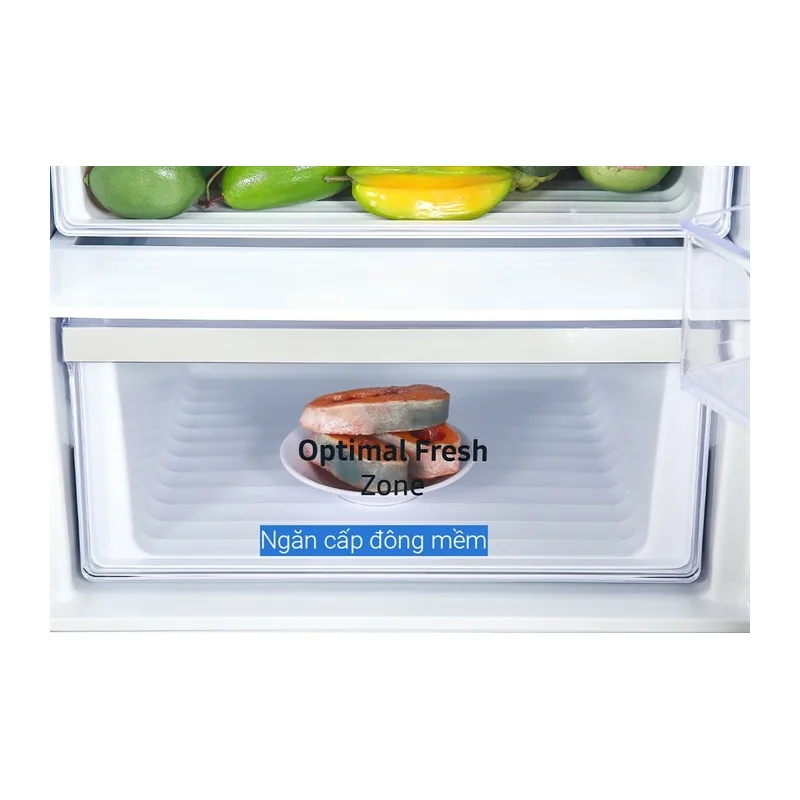 Ngăn mát được trang bị các kệ chứa linh hoạt, có thể điều chỉnh độ cao để phù hợp với các loại thực phẩm kích thước khác nhau. Ngăn rau củ lớn với công nghệ giữ ẩm giúp rau củ luôn tươi ngon, giữ nguyên hương vị và dinh dưỡng. Các kệ cửa rộng rãi cho phép bảo quản chai lọ, đồ uống một cách tiện lợi.