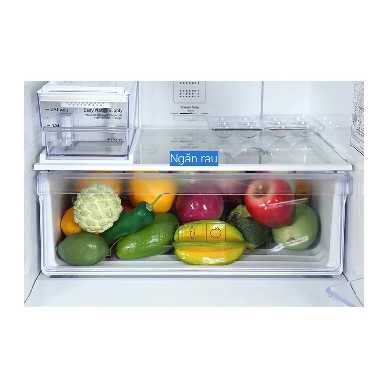 Ngoài ra, tủ lạnh còn được trang bị hộc rau quả lớn Big Box với khả năng điều chỉnh độ ẩm, giúp rau củ luôn giữ được độ tươi ngon và giá trị dinh dưỡng tối ưu.