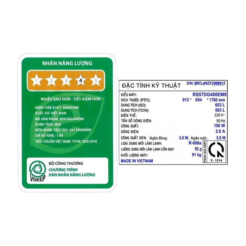 Công nghệ này giúp tủ lạnh Samsung RS57DG400EM9SV tiết kiệm đến 50% điện năng so với tủ lạnh thông thường, đồng thời giảm thiểu tiếng ồn và tăng tuổi thọ cho máy nén. Mặc dù dung tích lớn nhưng tủ lạnh chỉ tiêu thụ khoảng 1.45 kWh/ngày, giúp gia đình tiết kiệm đáng kể chi phí điện hàng tháng.