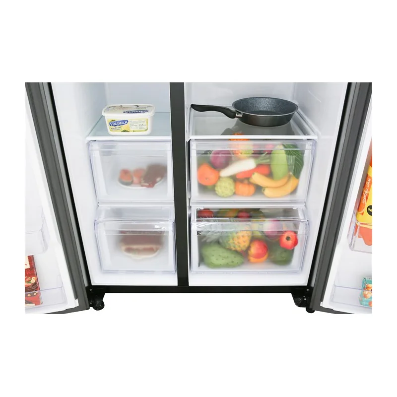 Không gian bên trong tủ lạnh Samsung RS62R5001B4/SV được thiết kế tối ưu với nhiều ngăn chứa thông minh. Các kệ kính chịu lực có thể điều chỉnh linh hoạt, phù hợp với nhiều loại thực phẩm có kích thước khác nhau. Các ngăn kéo được thiết kế trượt nhẹ nhàng, giúp việc lấy thực phẩm trở nên dễ dàng hơn.