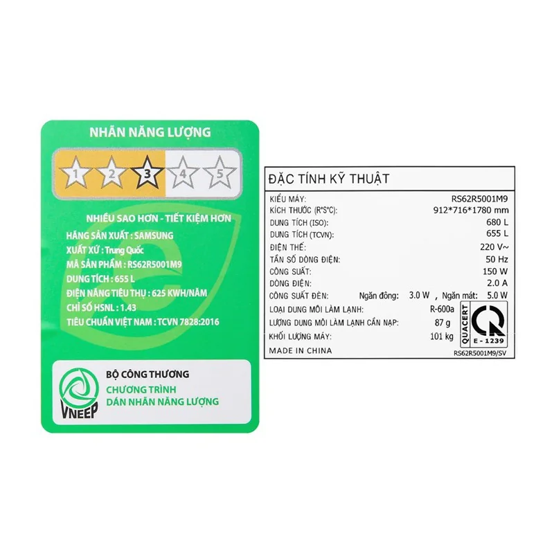 Với xếp hạng năng lượng cao, tủ lạnh Samsung RS62R5001M9/SV là lựa chọn tiết kiệm cho chi phí điện hàng tháng của gia đình, đồng thời góp phần bảo vệ môi trường.