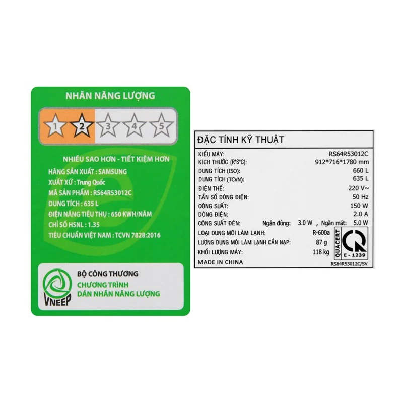 Đặc biệt, tủ lạnh đạt hiệu suất năng lượng 2 sao theo tiêu chuẩn Việt Nam, với mức tiêu thụ điện chỉ khoảng 1.5 kWh/ngày, giúp gia đình tiết kiệm chi phí điện hàng tháng dù sử dụng tủ lạnh dung tích lớn. Máy nén Digital Inverter còn hoạt động êm ái, bền bỉ với chế độ bảo hành lên đến 10 năm từ nhà sản xuất Samsung.