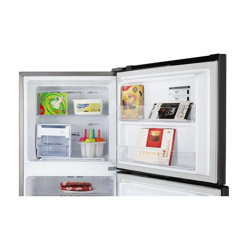 • Kệ cửa tiện lợi: Cửa tủ lạnh được trang bị nhiều kệ với kích thước khác nhau, phù hợp để đựng chai lọ, hộp sữa, trứng và các loại gia vị thông dụng.