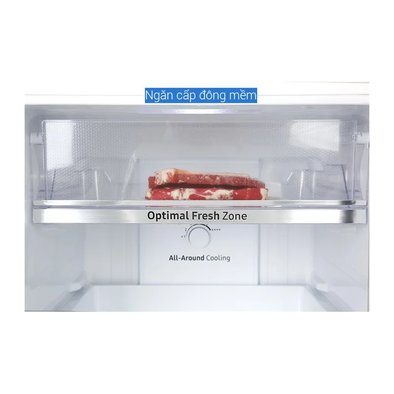 Một trong những tính năng đặc biệt của tủ lạnh Samsung RT22M4032BY/SV là ngăn đông mềm (Optimal Fresh Zone) được duy trì ở nhiệt độ khoảng -1°C đến 1°C. Ngăn này tạo ra môi trường lý tưởng để bảo quản thịt, cá và các thực phẩm tươi sống khác mà không làm đông cứng hoàn toàn.