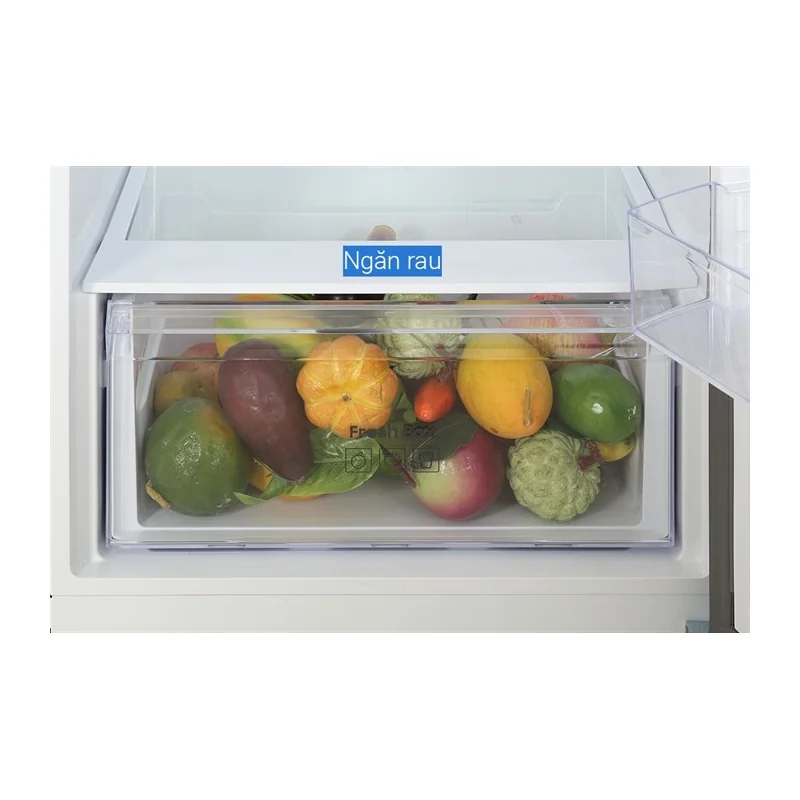Dung tích 305 lít được phân chia hợp lý với ngăn đông 68 lít và ngăn mát 237 lít, đáp ứng nhu cầu lưu trữ thực phẩm đa dạng cho gia đình từ 3-5 thành viên. Các ngăn kệ trong tủ được thiết kế thông minh, dễ dàng điều chỉnh để tối ưu không gian chứa thực phẩm theo nhu cầu sử dụng.