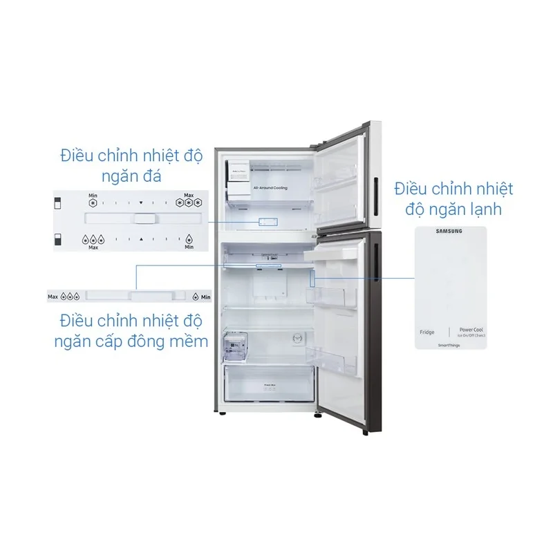 Với dung tích lớn 382 lít, tủ lạnh được phân chia hợp lý thành ngăn đông và ngăn mát, đáp ứng đầy đủ nhu cầu bảo quản thực phẩm cho gia đình 4-5 thành viên. Cụ thể, ngăn đông rộng 93 lít và ngăn mát rộng 289 lít giúp bạn có không gian lưu trữ dồi dào cho đa dạng loại thực phẩm từ rau củ quả, thịt cá đến các loại đồ uống.