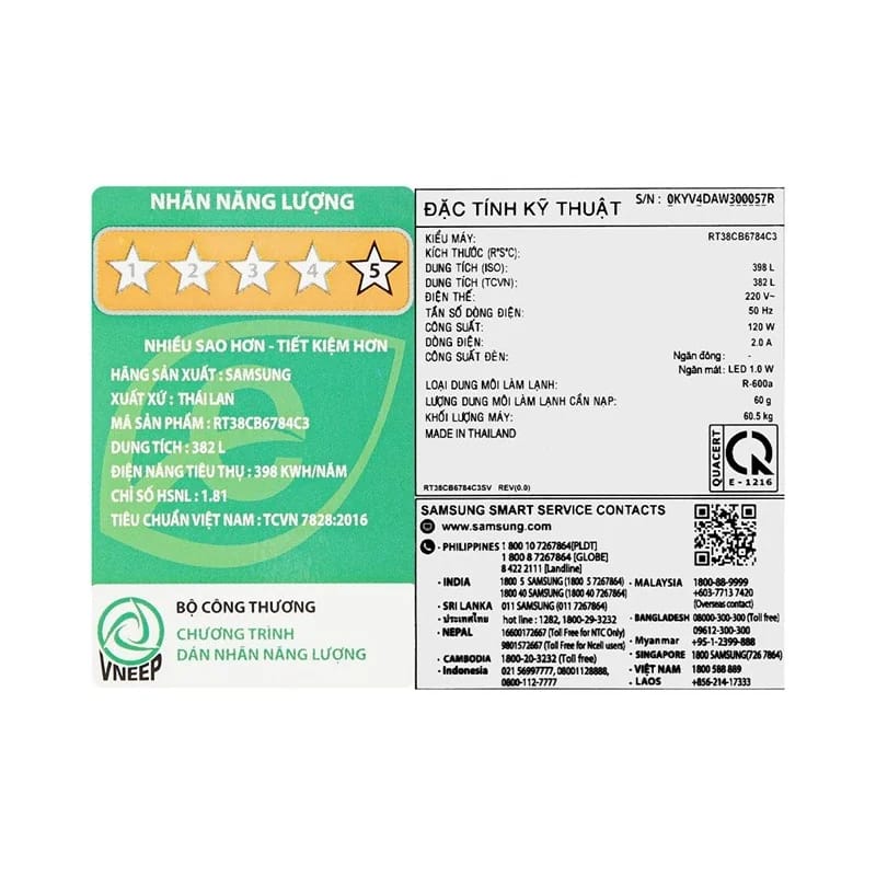 Với chỉ số năng lượng hiệu quả, tủ lạnh đạt mức tiêu thụ điện chỉ khoảng 398 kWh/năm giúp tiết kiệm chi phí điện hàng tháng cho gia đình. So với các dòng tủ lạnh thông thường, Samsung Bespoke RT38CB6784C3SV giúp giảm lượng điện tiêu thụ lên đến 50%, là lựa chọn lý tưởng cho những gia đình có ý thức về tiết kiệm năng lượng.