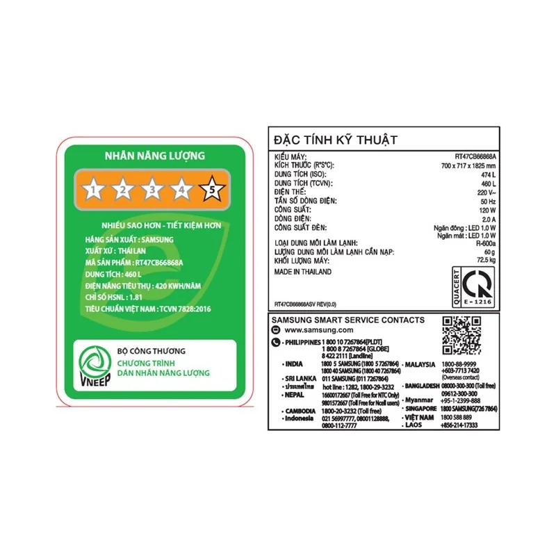 Samsung đã tự tin cung cấp chế độ bảo hành lên đến 20 năm cho máy nén Digital Inverter, minh chứng cho độ bền và chất lượng vượt trội của sản phẩm. Với hiệu suất năng lượng 5 sao theo tiêu chuẩn Việt Nam, tủ lạnh Samsung Bespoke RT47CB66868ASV giúp gia đình tiết kiệm đáng kể chi phí điện hàng tháng.